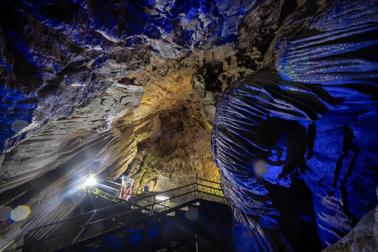 Ikura Cave extends for about 1,200 meters with an internal elevation change of around 90 meters, carved within the limestone walls of Ikura Gorge.